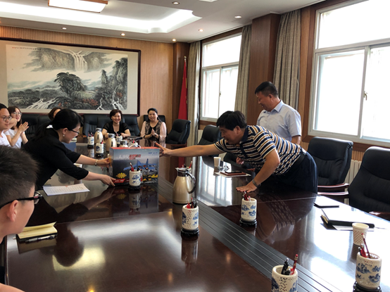 会议的后半部分,王主任主持同学们自我介绍,分别分派到八个业务部门。王主任指出,同学们要多和业务导师交流,此外,安全和保密意识不可少。最后,梁老师向检察院方面赠送了具有北航特色的纪念品,会议结束。