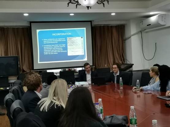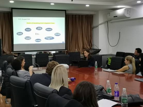随后,我院公益法律服务中心吴文韬同学与夏梦彤同学分别展示了中国法律援助制度以及英国上市公司365公益法律服务中心情况,并播放了中心英文宣传短片。