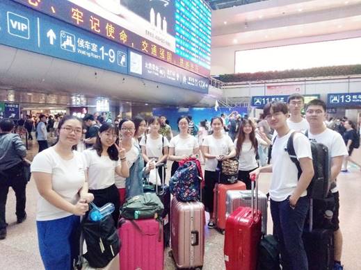 晨光熹微,滚轮压过满地花瓣,摩擦地面发出整齐的声响。与带队老师王琦老师兵分两路,而殊途同归。大家在火车站成功汇合,时间恰好,简单早餐后动身检票。
