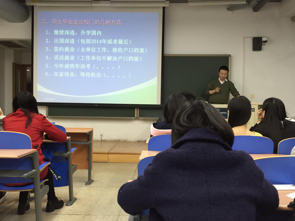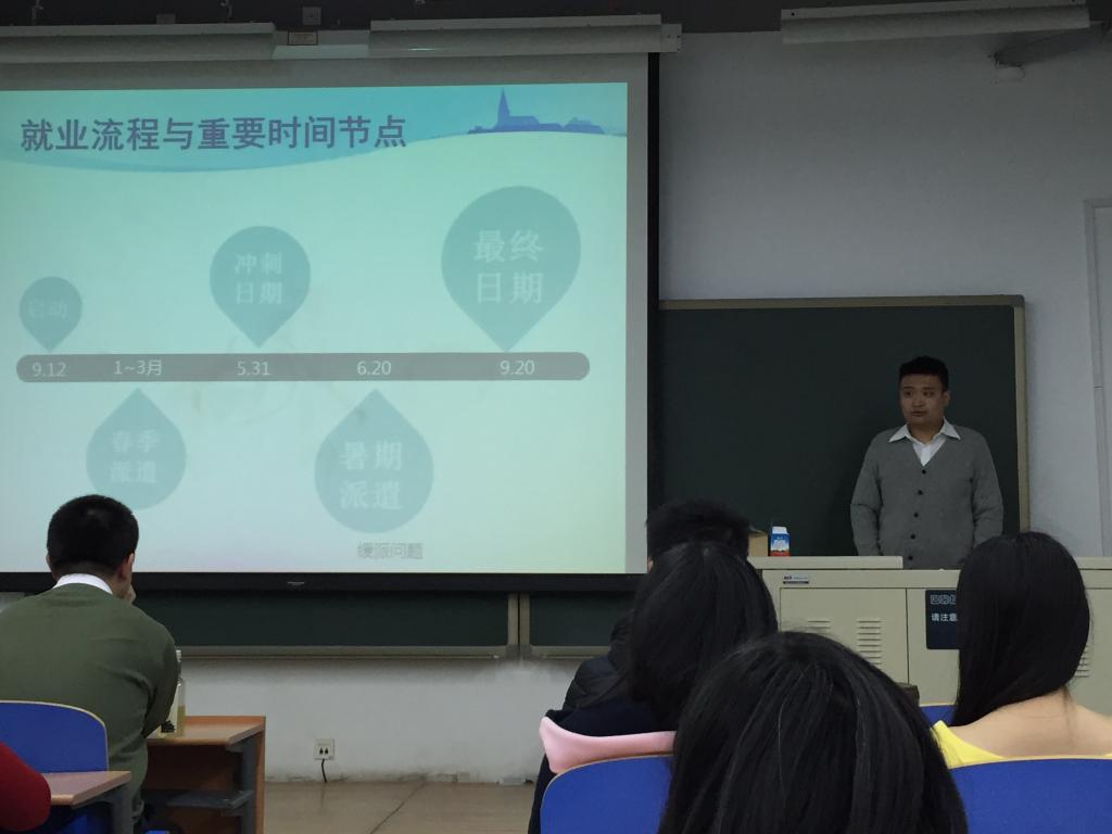 接下来,招生就业处吴衍川老师从当前的就业形势谈起,告诉同学们虽然我国当前应届毕业生就业形势不容乐观,但是作为北航毕业的学生,同学们不必过于担心自己难以找到工作,只需要按照实际情况调整自己的就业预期,找到最适合自己的工作还是可以有所作为的。之后,吴老师对于毕业生就业的流程和近年来国家的就业政策进行了分析,并着重强调毕业生在就业过程中学生档案等各种文件要妥善保管,在各种证明的有效期内办理相关手续,避免不必要的麻烦。