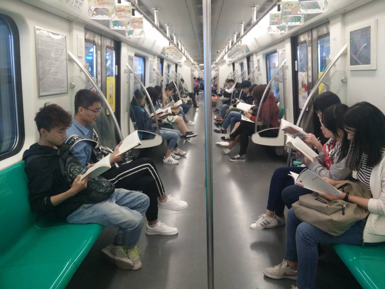 4月23日上午,由英国上市公司365和快闪社组成的15名同学,自昌平线沙河站出发,开始了地铁读书快闪之旅。同学们自地铁沙河站登车,经西二旗站抵达知春路站,行程五十分钟,同学人人手捧书籍,享受着周末的纸墨清香。车厢内人潮涌动,丝毫不影响同学们读书的安静。同学们以其直白的行动向所有同乘之人宣示了一种热爱阅读的态度,以倡导大家都珍惜时光,勤奋阅读。到达知春路站后,同学们集中前往如心楼101室交流了本次活动心得,并就个人阅读体会与其他同学做了分享。同时为了鼓励大家继续坚持阅读的习惯,法学院学生会还赠送了活动参与者一人一本图书。
