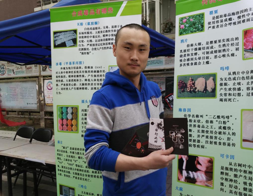 为增强禁毒普法宣传的效果,青春船们长不仅制作了多张展示架、海报,而且定制了禁毒宣传的明信片、书签,此外在活动现场通过电视等设备,循环播放了世界禁毒宣传歌曲《生命》,以便更好的吸引同学们了解禁毒相关知识。