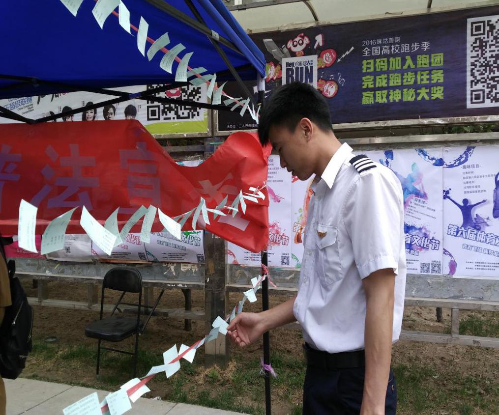 2016年4月26日上午,伴随着晴朗的天气,北京航空航天大学“青春船长”团队怀着期盼的心情来到北航沙河校区,进行禁毒普法宣传活动。按照北京市法宣办的工作部署,去年年底,我校青春船长团队已经在北航本部校区进行过一次禁毒宣传的外场活动,考虑到沙河校区尚未开展相关的禁毒活动,于是决定为沙河校区的同学们进行一次禁毒普法宣传,引起他们对禁毒的重视,增加他们对禁毒知识的了解!