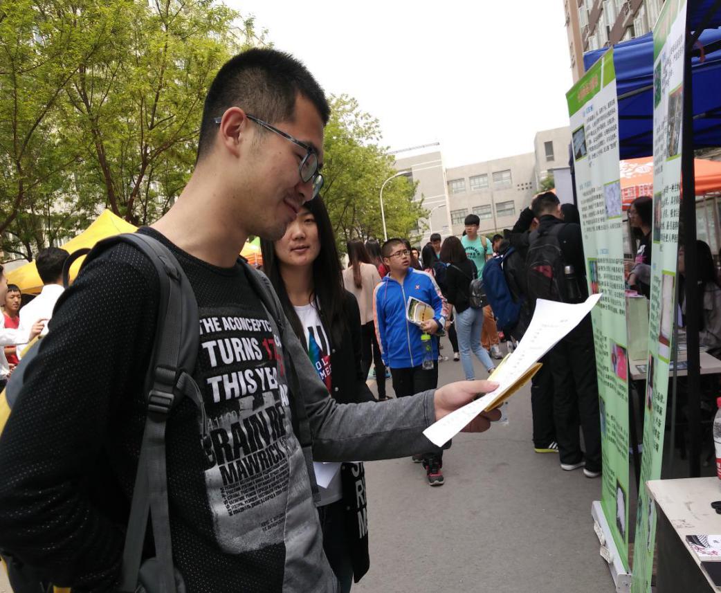 很多同学还认真阅读展示架上的相关文字内容,对一些不懂的地方进行询问。