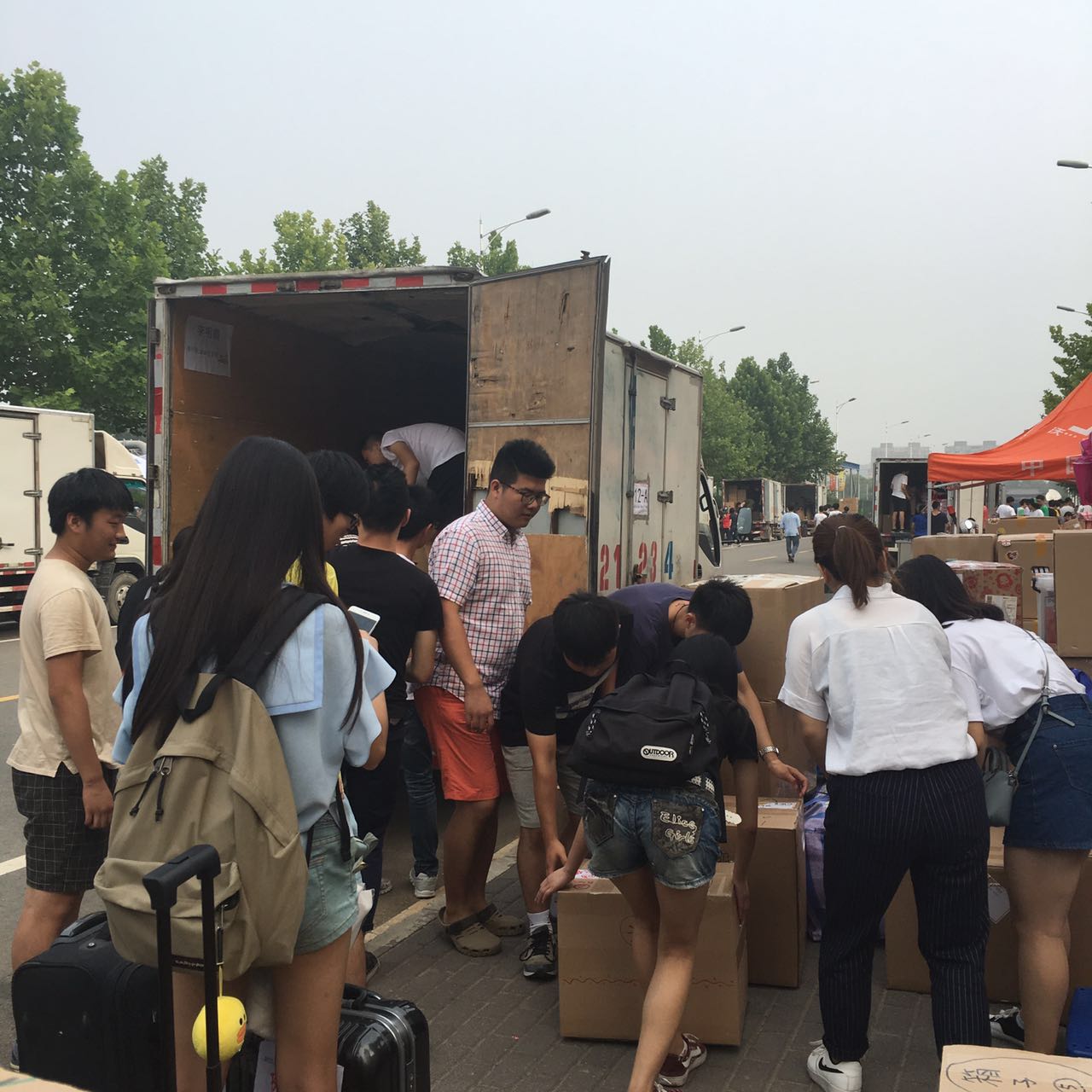 至上午十一时许,货车和客车抵达学院路校区,此时,在学院路校区女生宿舍楼下的法学院学长和其他院系的志愿者早已等候多时,一看到女生们拎着大包小包就接到自己手里,二话不说扛上楼。此外,我们在志愿服务的人群中还看到了本级男生的熟悉面孔——原来法学院男生们担心在学院路校区的人手不够,为了能更高效分担劳动量,纷纷主动自行前往,帮助女生们搬迁宿舍。将笨重而硕大的纸箱扛上五楼对任何人而言都是一个艰巨的挑战,但是团队合作、其利断金,男生们充分发挥力气大、不怕难不怕苦的精神,而女生们也“巾帼不让须眉”地为搬迁出力。