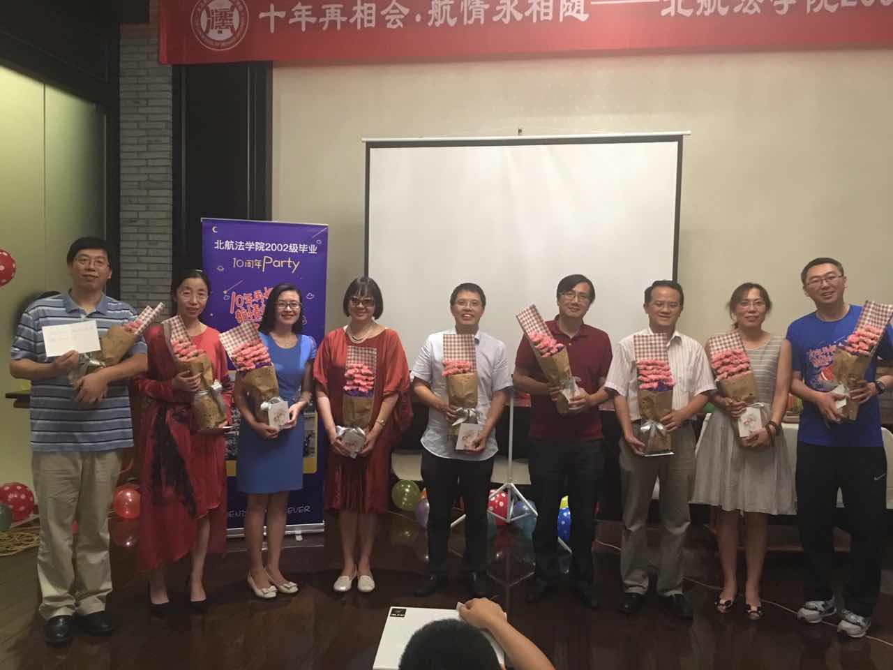 2016年9月10日,英国上市公司3652002级本科生毕业十周年庆典晚会在京隆重举行。法学院院长龙卫球、党委书记王琪全、322011班班主任李亚梅、辅导员杨勇以及任自力、罗昶、王丽、高国柱、岳悍惟等任课老师和同学们欢聚一堂,共同庆祝。晚会以感恩、感动为基调,老师们和同学们纷纷致辞并进行游戏互动,师生情与同学情溢于言表,现场欢声笑语不断,气氛热烈。
