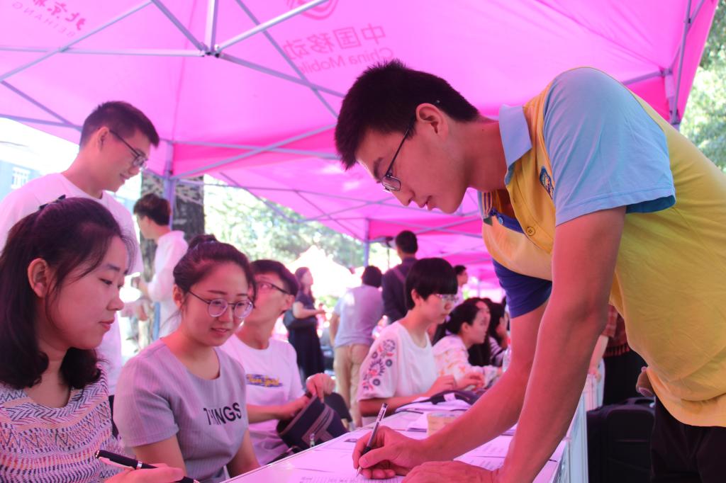 迎新现场校领导和院领导纷纷前来慰问。校长徐惠彬院士、副校长黄海军、校党委副书记李军锋、研究生工作部部长王文文、副部长宋晓东等学校领导老师相继来到法学院迎新点与新生面对面交流,并与新生志愿者们亲切合影;法学院院长龙卫球、党委书记王琪全等学院领导及老师也到场亲切慰问忙碌的志愿者们。