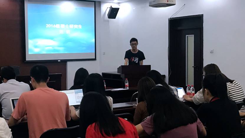 随后,优秀硕士研究生汪衍向同学们分享了自己主办以及参加学术论坛的经验。学术论坛作为常规学术活动之一,在每年6月份启动,采用公平公正的评审方式与标准,是同学们检验自己学术水平的良好平台。学长建议同学们要早作准备,虚心向导师请教,选好论文的题目,认真修改论文内容,并且要注意论文格式规范。