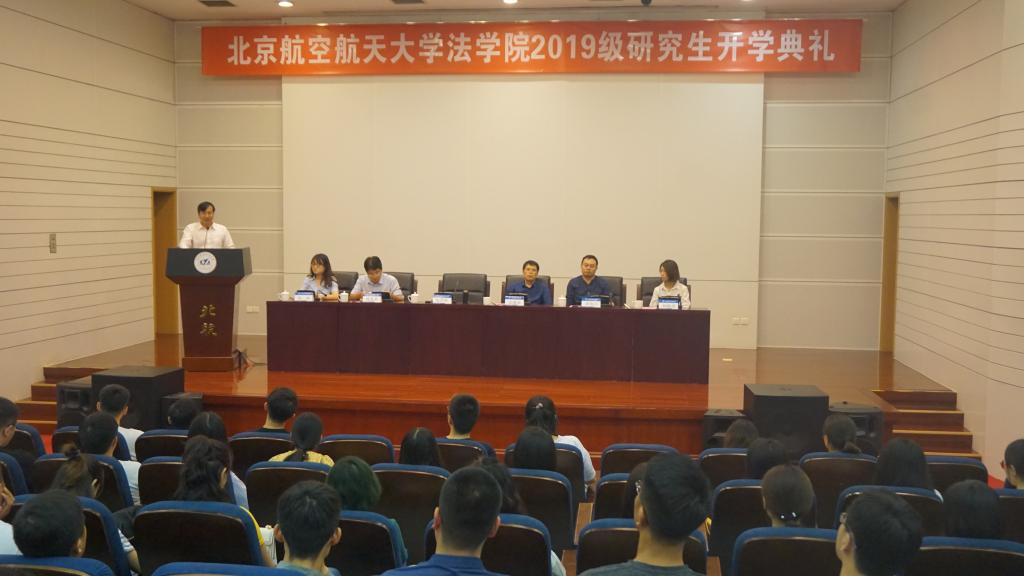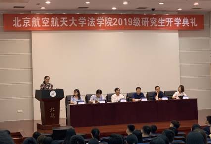 9月8日下午,北京航空航天大学法学院2019级研究生开学典礼在学院路校区新主楼第二报告厅隆重举行。法学院院长龙卫球,党委书记王琪全,副院长周友军、泮伟江、初殿清,以及教师代表、在校生代表与122名2019级研究生新生共同出席开学典礼,典礼仪式由党委副书记张渊主持。