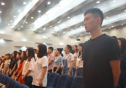 开学典礼在庄严的国歌声中拉开序幕,与会人员全体起立,饱含热情齐声高唱国歌。2019级硕士研究生冯修桦作为新生代表发言。她首先表达了成为北航法律人的喜悦之情并对即将到来的研究生生活充满无限憧憬,表现出了勇担空天报国使命的决心。同时,她向全体新生发出倡导,要以学校平台资源为基础,综合提升自身素养,奋发上进,为法治现代化贡献自身力量。