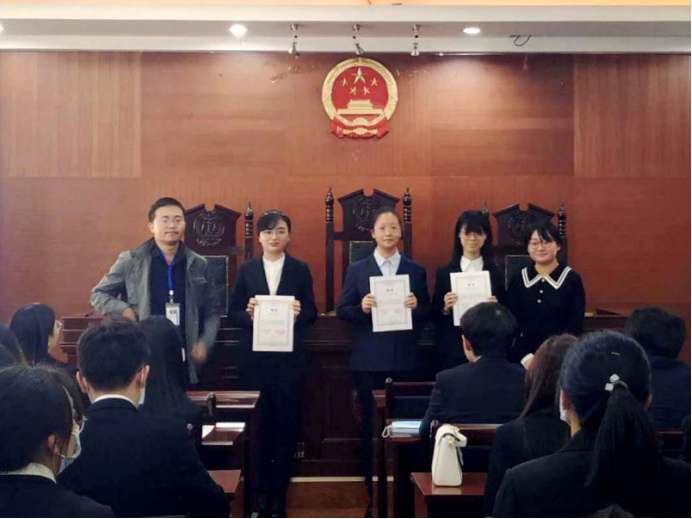 大会第七项:监票人公布选举投票结果通过与会代表投票,崔莹莹、陆睿、杨阳三位同学当选法学院第二十届学生会主席团成员。法学院党委副书记张渊老师、分团委书记邹沛东老师为法学院第二十届主席团成员颁发聘书。