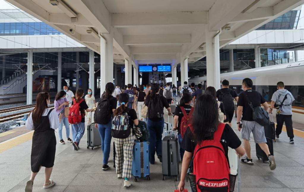火车站内人头攒动,随着列车进站,拥挤的人群逐渐各自散开,我们跟随路牌指示向前行进,终于登上G2573号列车,正式踏上淮安之旅。