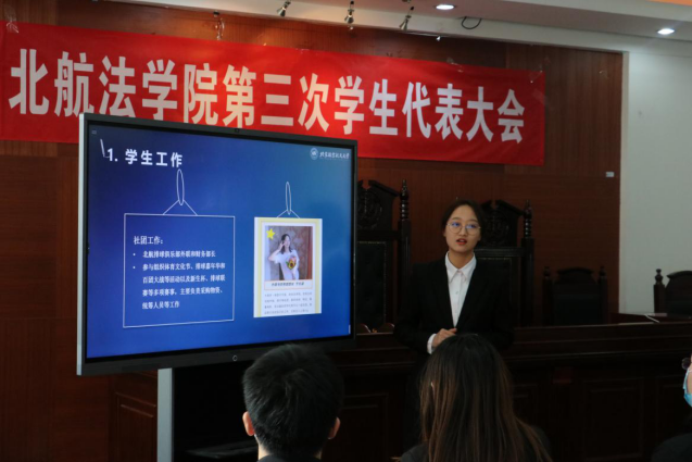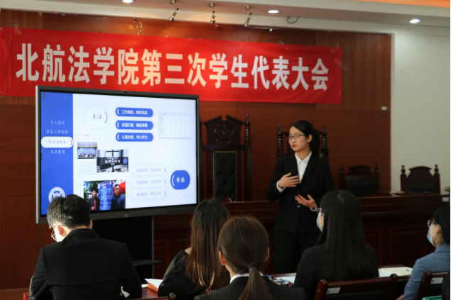 初雪送别过往,晴日映入如心。2021年11月10日星期三下午13:00,北京航空航天大学法学院第三次学生代表大会暨第二十一届学生会主席团换届选举顺利举行。本次大会由法学院第二十届学生会主席陆睿主持,法学院党委副书记张渊、分团委书记邹沛东、校学生会代表梁小湛、本科生辅导员李白、吴峥出席会议。