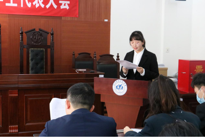 第二十届学生会主席团成员崔莹莹向与会老师、辅导员、学生代表宣读工作报告