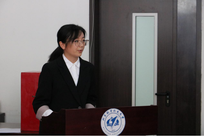 宁文笛、宋碧寒、梁淏萌三位同学依次进行竞选答辩。三位同学从学习及工作经历、未来履职计划及学生会发展方向进行介绍阐述,提出许多创新性想法,令人耳目一新。