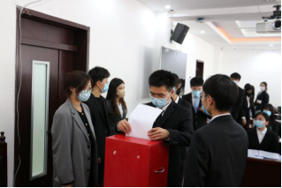 通过与会代表投票,宁文笛、宋碧寒、梁淏萌三位同学当选法学院第二十一届学生会主席团成员。分团委书记邹沛东老师为法学院第二十届主席团成员颁发聘书。