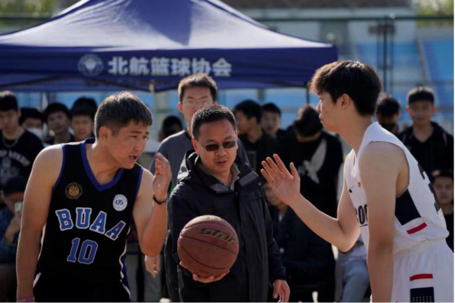 北京航空航天大学“空天杯”本科生班级篮球赛由北航篮球协会主办,参赛队员基本覆盖学校所有院系的本科生班级,为我校关注度最高、赛程最长、参与院系最多的校级篮球赛事之一。法学院积极落实学校“坚持德智体美劳‘五育’并举”的工作要求,组织学生参与各项体育活动。以空天杯赛事为代表,法学院积极组织师生运动会、师生羽毛球赛等活动,航法学子强身健体,团结奋斗,弘扬体育精神和道德风尚,彰显新时代大学生坚定自信、奋力拼搏的品质。