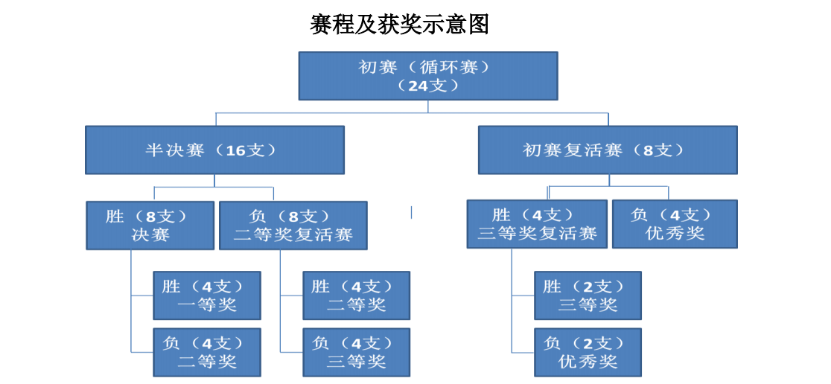 本次竞赛分为二个阶段:第一阶段为初赛(循环赛);第二阶段为半决赛和决赛,并举行复活赛。