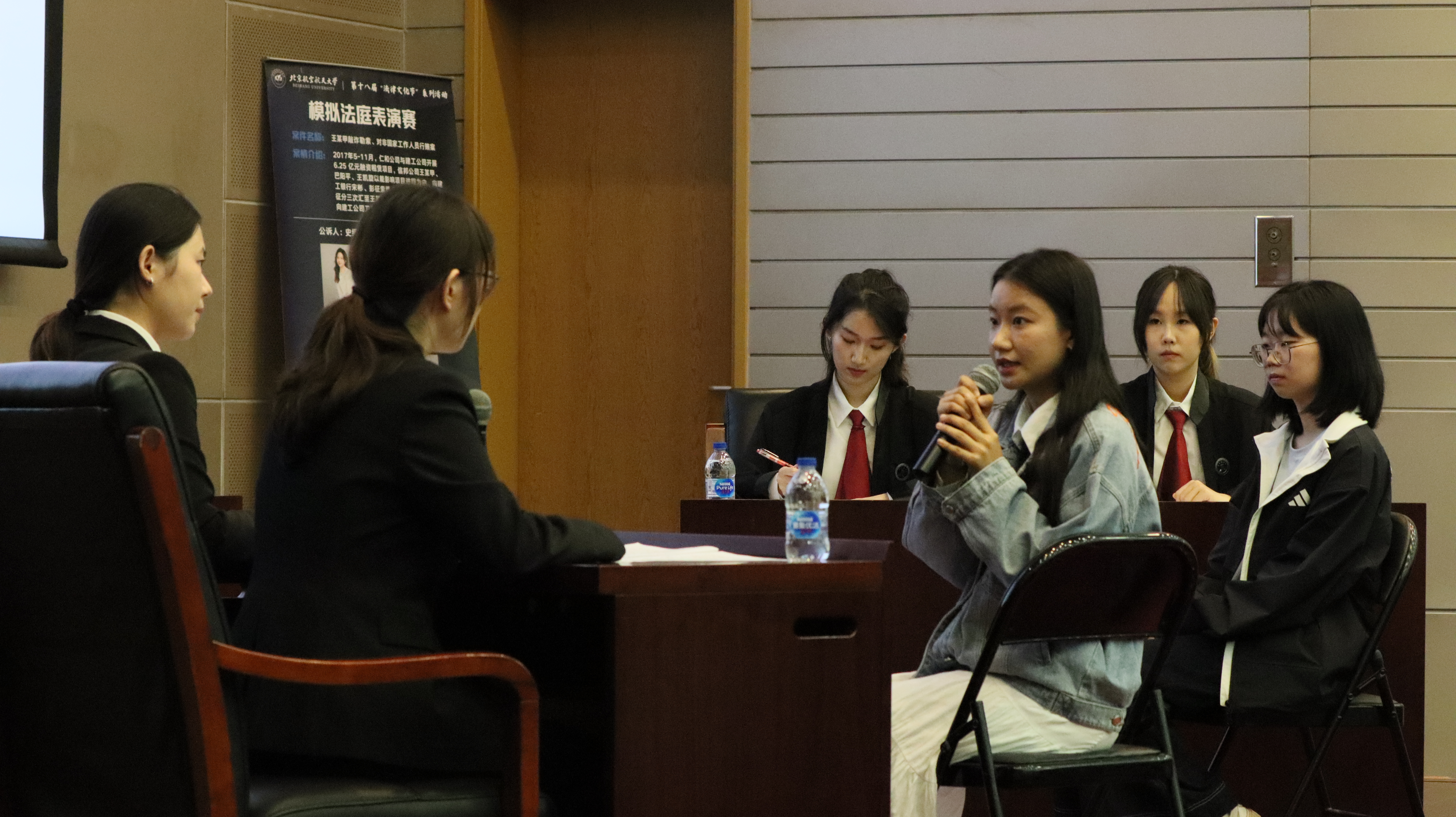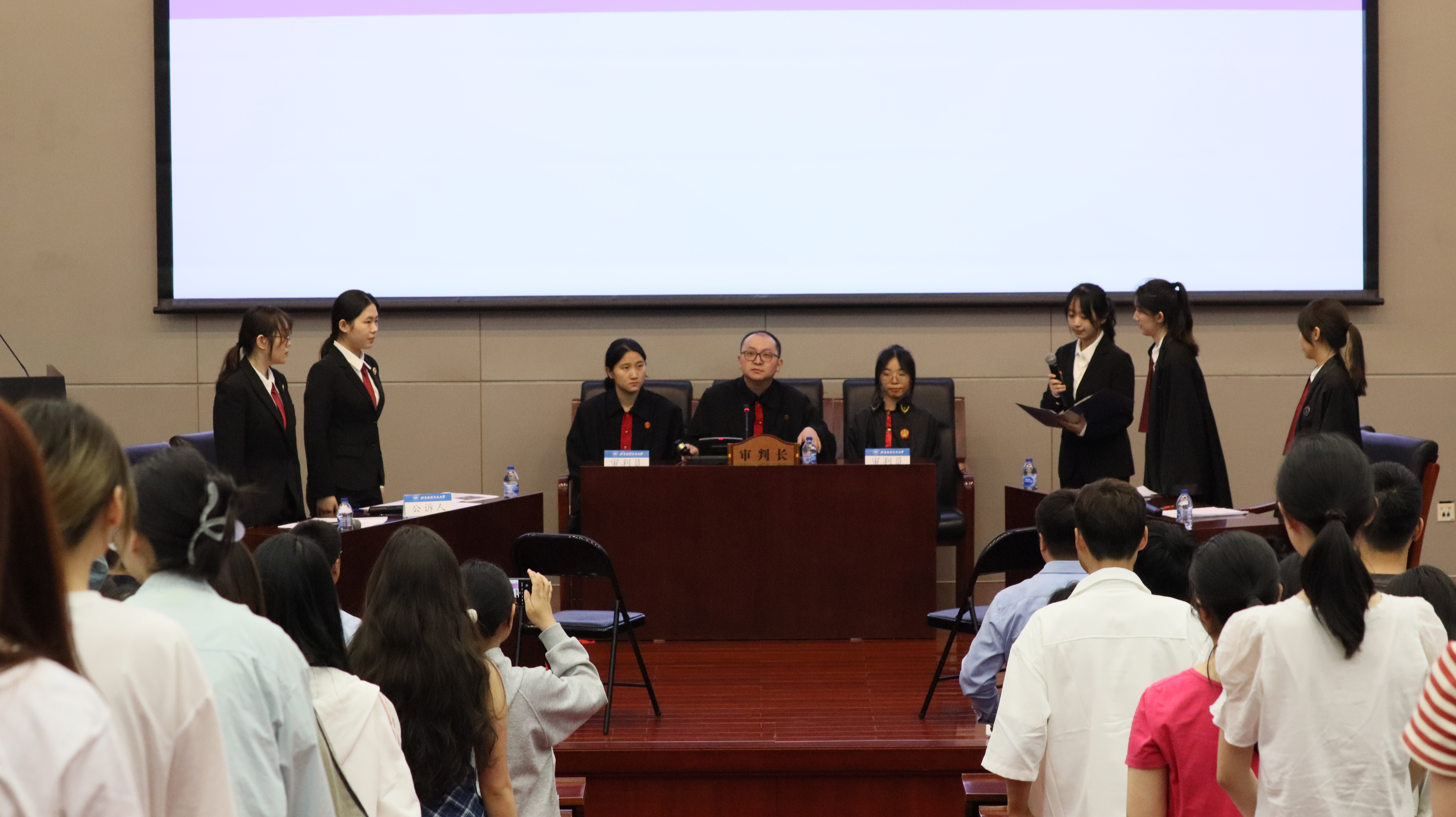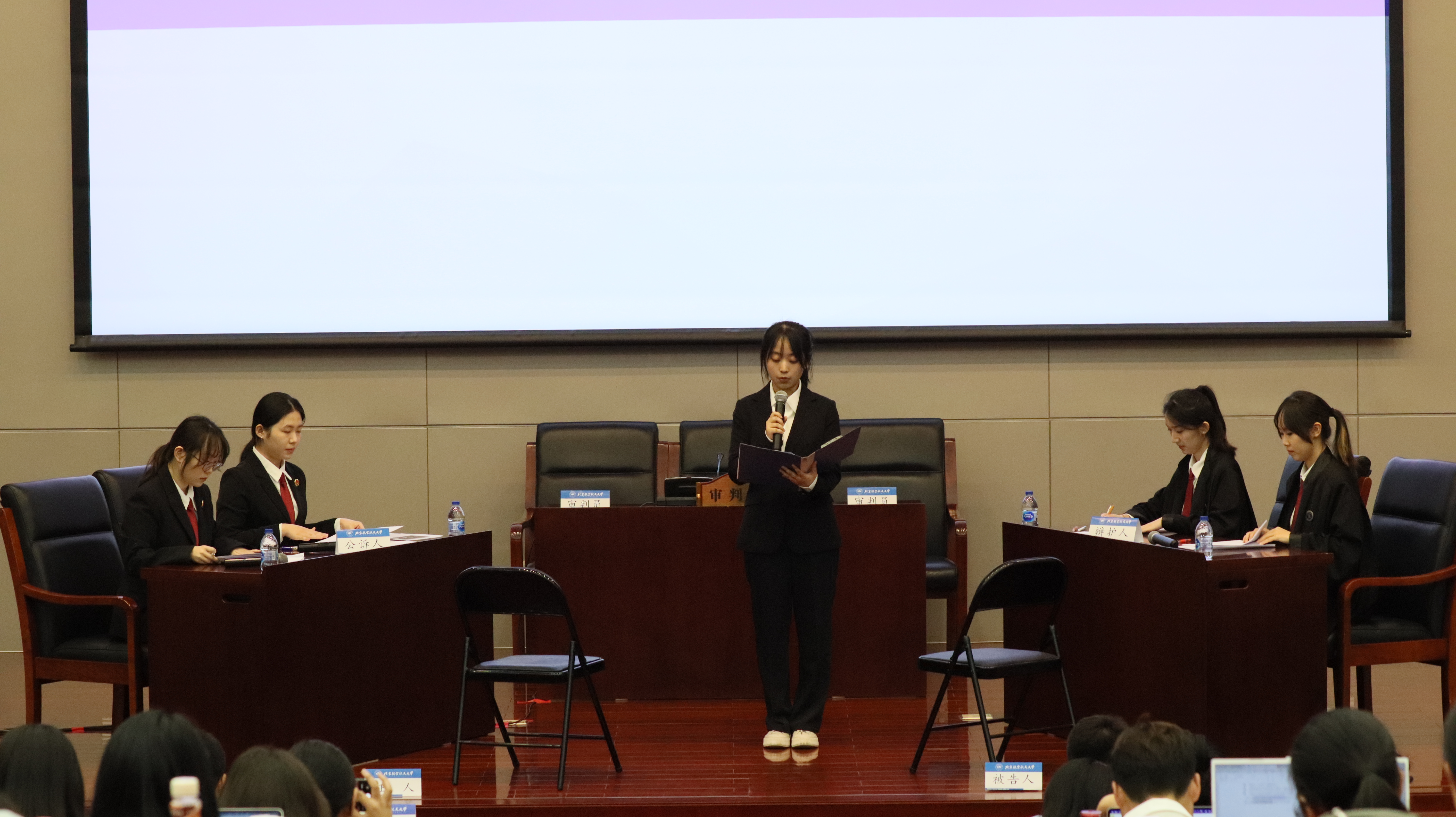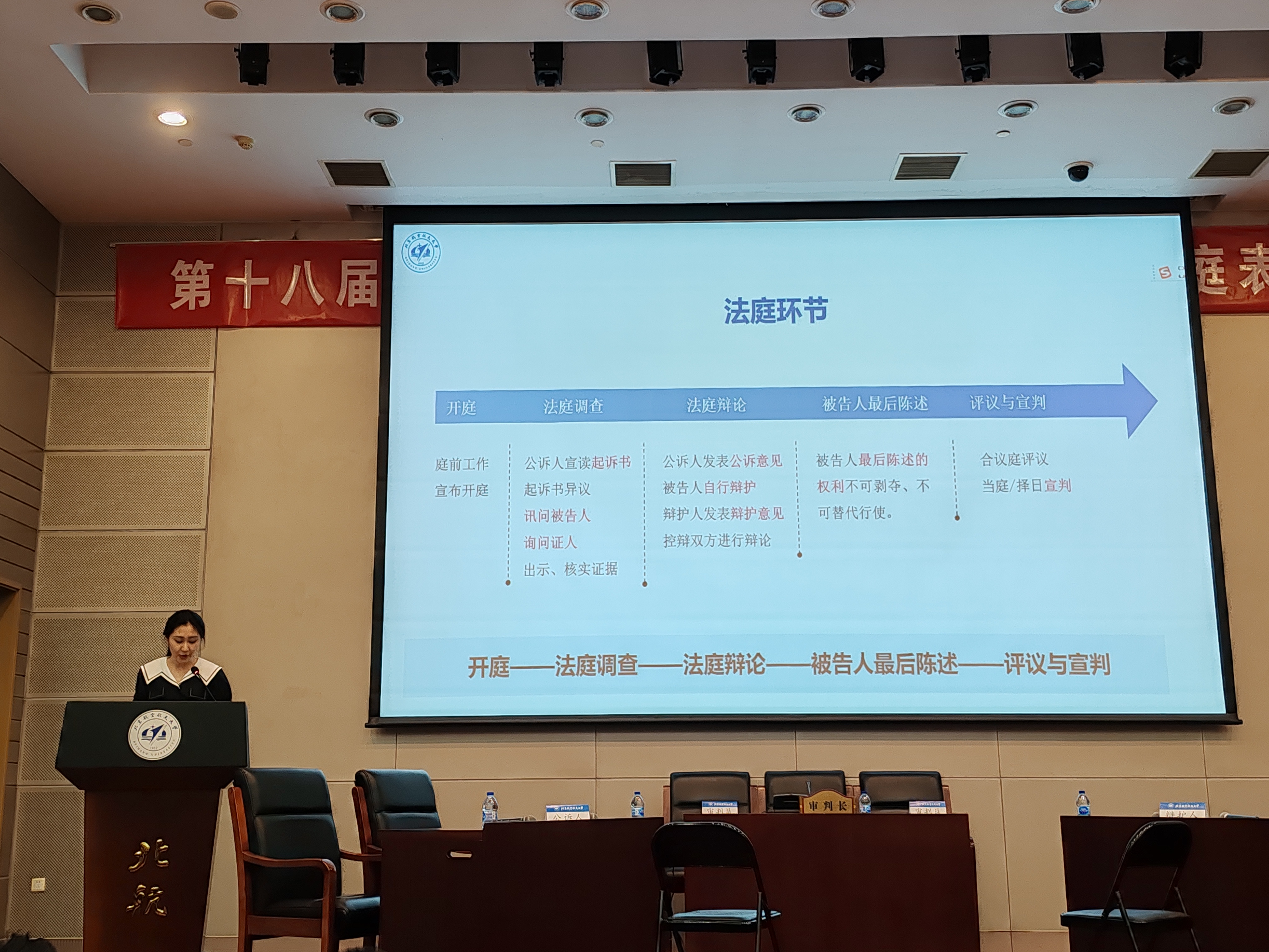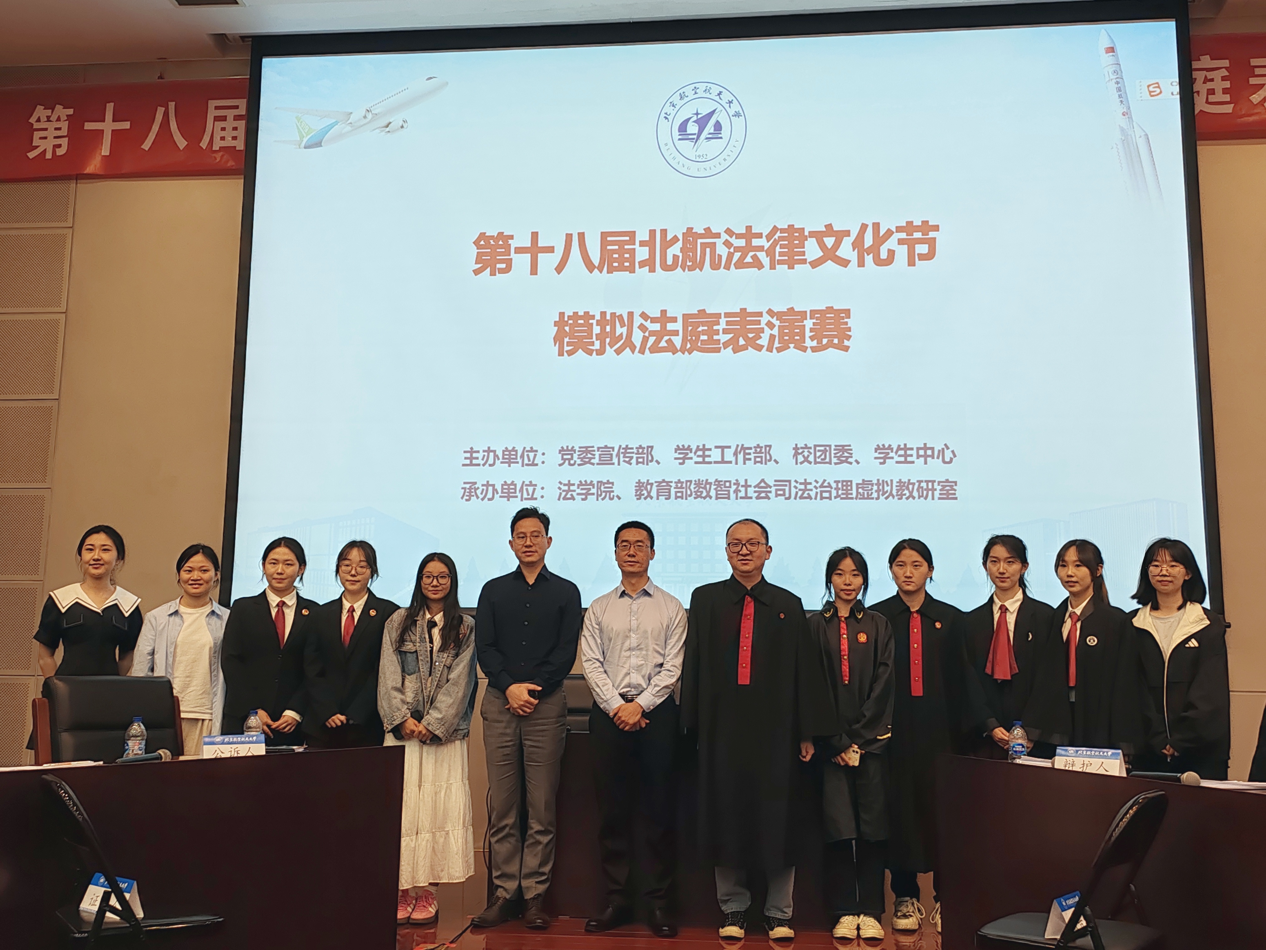 5月14日,第十八届北航“法律文化节”模拟法庭表演赛在学院路校区新主楼第一报告厅举办。本次表演赛以“全民陪审团”博雅课程形式举行,由2022级北航模拟法庭队的6位队员倾情演绎。北航模拟法庭队指导教师吉冠浩副教授担任审判长,北京周泰律师事务所高级合伙人薛永奎律师、合伙人何宝明律师应邀出席并点评。活动由法学院2023级本科生宫伟佳主持。