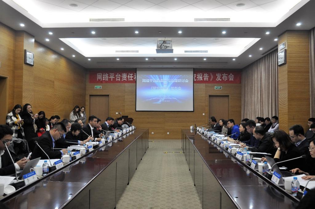 2018年1月4日,由北京航空航天大学法学院、工信部工业和信息化部法治战略与管理重点实验室、腾讯公司法务平台部、腾讯研究院联合主办的网络平台责任与治理研讨会暨《网络平台的责任与治理项目课题研究报告》(简称《研究报告》)发布会在北京航空航天大学顺利举行。来自北京航空航天大学、北京大学、清华大学、中国政法大学、中国人民大学、对外经济贸易大学、中央财经大学、北京师范大学、中国社会科学院、中国信息通信研究院等多所高校和研究机构的学者与来自阿里、腾讯、京东、新浪、今日头条、快手等网络平台业界专家齐聚一堂,深入探讨新时代网络平台的责任与治理问题。