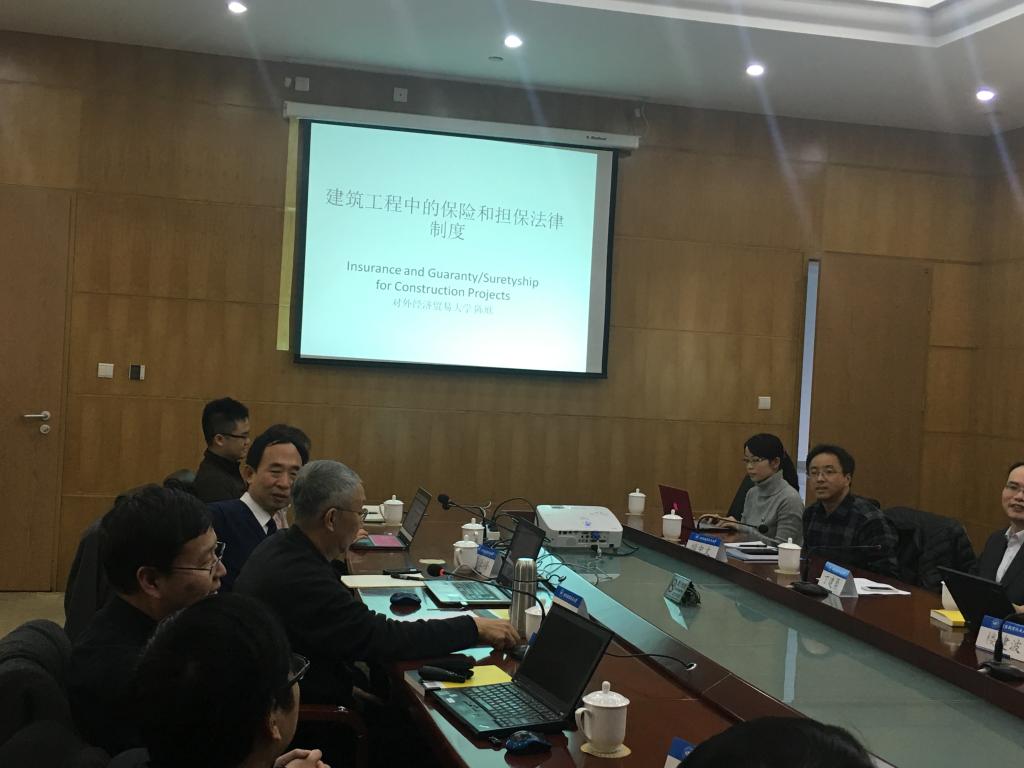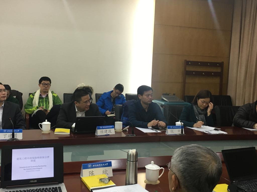 论坛主讲人由对外经贸大学陈欣教授、联合建管(JCM)国际工程技术研究院邱闯院长担任。他们的演讲题目分别为“建设工程中的保险与担保制度”和“建筑师责任制与建设监理制的现状、问题与发展”。陈欣教授兼任中国保险法学研究会副会长,是国际建设工程保险领域的权威专家,邱闯教授则兼任英国皇家特许建造学会(CIOB)中国北方区主席、中国国际经济贸易仲裁委员会和北京仲裁委员会仲裁员、清华大学国际工程项目管理研究院特聘教授等,是国内建设工程管理等方面的著名专家。论坛与谈人包括丁建勇(北京仲裁委员会仲裁一处处长)、檀中文(中航勘察设计院总法律顾问)、张欣(东方资产投资法务部总经理)、楼建波(北京大学法学院教授、北大房地产法研究中心主任)、周学峰(英国上市公司365副教授、北航工业与信息化法治研究院副院长),另有来自国内学术界、实务界的专家学者近20人与会。