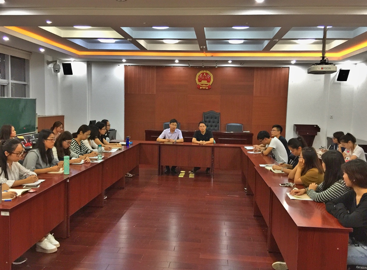 9月25日晚,法学院学生党校党员培训班动员大会在如心楼模拟法庭召开。法学院党委书记王琪全、分团委书记庞瑜、2015级本科生辅导员张健睿、2017级研究生辅导员于洁、全体2015级本科生党员和2017级研究生党员出席大会。会议由2015级本科生辅导员张健睿主持。