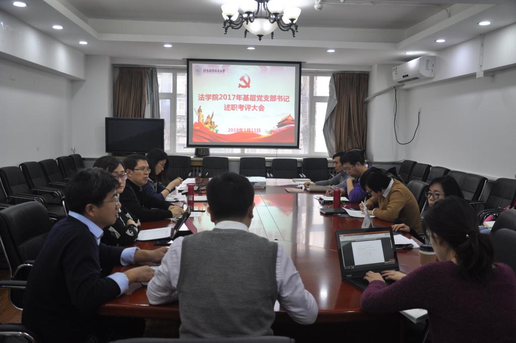 2018年1月15日,法学院2017年度基层党支部书记抓支部工作述职考评会在如心楼206室举行。法学院党委书记王琪全,党委委员周友军、初殿清、张渊以及各教工党支部和学生党支部书记出席本次会议,会议由党委委员庞瑜主持。
