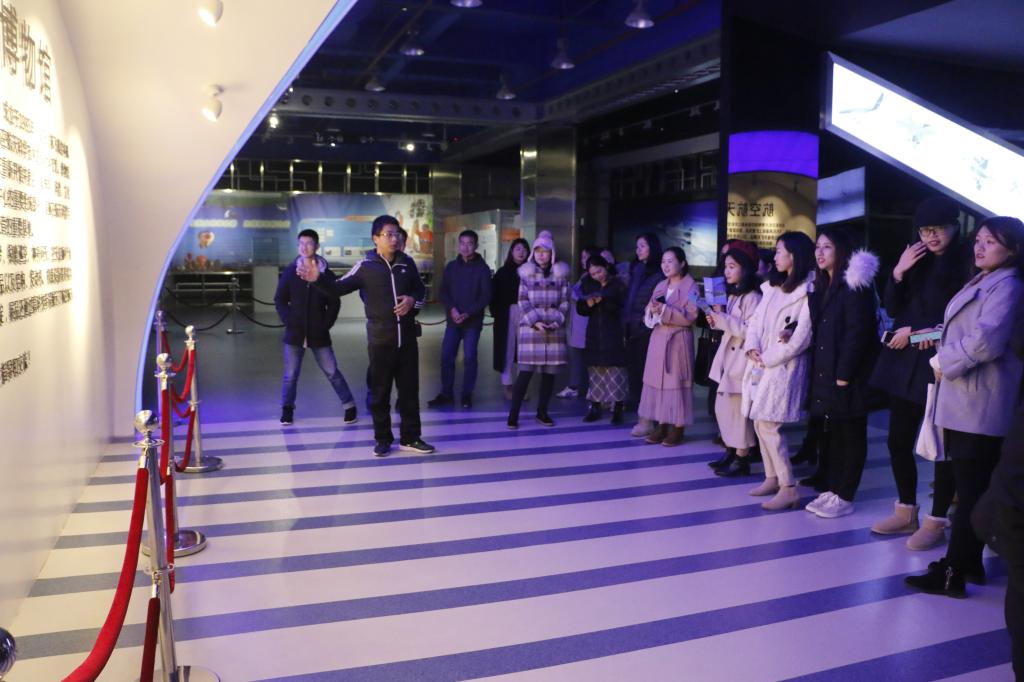 三个支部首先一同参观了北航航空馆。参观活动在航空学院硕士18054党支部书记张山同志的讲解中开始。北航航空馆成立于1985年,是在北航飞机结构陈列室和飞机机库的基础上扩建而成的。2012年,北航甲子校庆重新开馆并更名,其中共有四个展区,分别为长空逐梦、银鹰巡空、空天走廊和神舟问天。政法大学的同志很多是第一次来北航,张山同志的讲解让他们对北航以及航空馆的历史有了初步的了解。航空馆的展品向同志们展现了祖国航天事业从无到有、从落后到领先的辉煌历史,同志们感慨纷纷,希望祖国的空天事业能够百尺竿头更进一步。