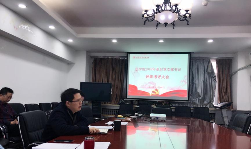 2019年1月14日,法学院在如心楼206会议室召开党支部书记联席会,举行2018年度基层党支部书记抓支部工作述职考评大会。法学院党委书记王琪全,党委委员泮伟江、初殿清、张渊以及各教工党支部和学生党支部书记出席本次会议,会议由党委书记王琪全主持。