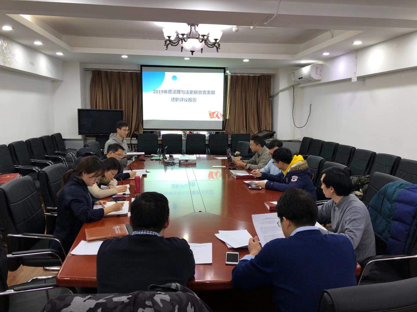 2019年12月25日,根据学校党委部署,法学院党委在如心楼206会议室召开分党委扩大会,组织开展2019年基层党支部书记抓支部工作述职评议考核工作。会议由院党委王琪全书记主持,党委委员全部出席。