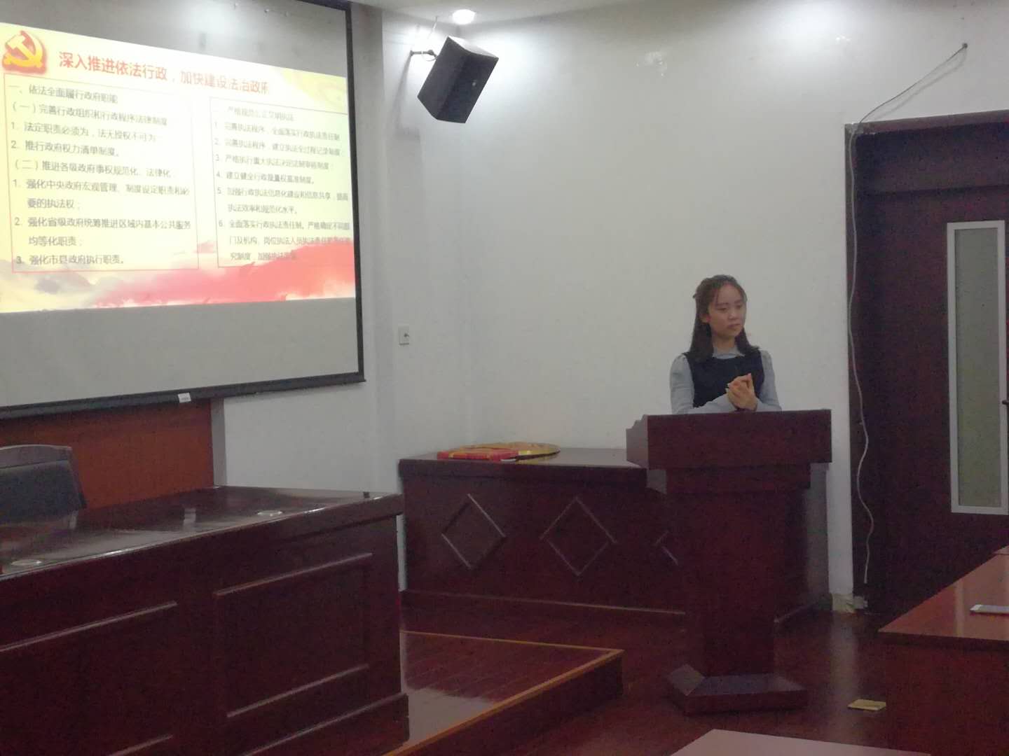在交流环节硕士研究生二年级学生党员茹超同志认为“法律是治国之重器,推动我国经济社会持续健康发展,不断开拓中国特色社会主义事业更加广阔的发展前景,必须全面推进依法治国。法学学子要努力学习,扎实专业知识,为法治建设做贡献。”学生党员李亚琦同志则对主讲人的"知法律于心,守法律于行"表达了高度的认同,认为作为一名法学专业学生,我们不仅要理论上明白,还要实践中坚守。