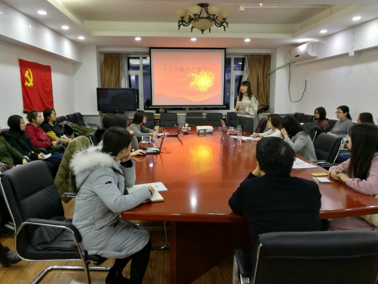 2018年伊始,法学院本科生第二党支部在如心楼206开展关于十九大精神的主题学习活动,活动邀请到了法学院分党委书记王琪全老师莅临指导,法学院本科生第一党支部的同志也参加了会议。