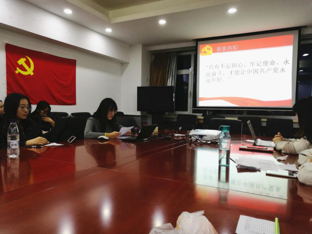 本次学习活动主题为“不忘初心,牢记使命,依法治国,青年当先”。首先,同志们观看了视频《红船精神》,并由陈希同志作主题报告。2005年6月21日,现任中共中央总书记、时任中共浙江省委书记的习近平在《光明日报》发表署名文章《弘扬“红船精神”,走在时代前列》,首次公开提出“红船精神”的概念,并对“红船精神”的内涵进行了概括和论述,认为“开天辟地、敢为人先的首创精神,坚定理想、百折不挠的奋斗精神,立党为公、忠诚为民的奉献精神,是中国革命精神之源,也是‘红船精神’的深刻内涵”。中国共产党第十九次全国代表大会的主题68个字,打头便是“不忘初心,牢记使命”,中国共产党人的初心和使命,就是为中国人民谋幸福,为中华民族谋复兴,这个初心和使命是激励中国共产党人不断前进的根本动力。“只有不忘初心、牢记使命、永远奋斗,才能让中国共产党永远年轻。”党的十九大闭幕仅一周,习近平总书记就带领中央政治局常委专程瞻仰上海中共一大会址和浙江嘉兴南湖红船。回顾建党历史,再望奋斗历程,重温入党誓词,阐明“红船精神”,一系列活动宣示了新一届中央领导集体的坚定政治信念,凝聚起全党担当使命、矢志奋斗的磅礴力量。从红船精神到长征精神,从大庆精神到载人航天精神……一脉相承的精神谱系,成为激励全党砥砺奋进的强大精神力量。